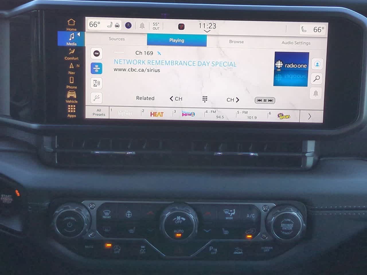 - Radio con buscador, reloj, control de volumen con compensación de velocidad, toma auxiliar de entrada de audio, mandos en el volante, activación por voz, sistema de datos por radio y control de memoria externa Uconnect.