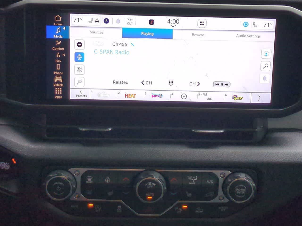 - Radio con buscador, reloj, control de volumen con compensación de velocidad, toma auxiliar de entrada de audio, mandos en el volante, activación por voz, sistema de datos por radio y control de memoria externa Uconnect.